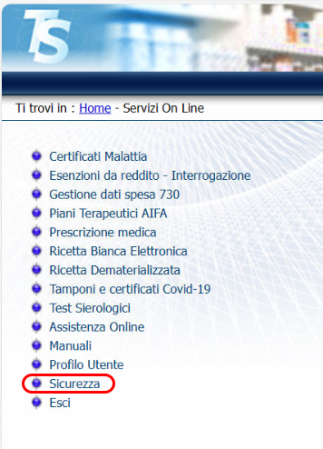 4 - Fare click su "Sicurezza" nel menu di sinistra: