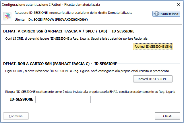 2 - Fare click sul pulsante "Richiedi ID-SESSIONE SSN":