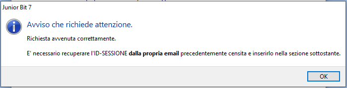 4 - Inserire il codice nel campo "ID-SESSIONE" in Junior Bit 7 in base alla richiesta effettuata (fascia A SSN o fascia C):