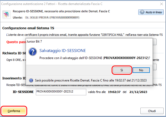 5 - Fare click sul pulsante "Conferma" e quindi su "Sì" per concludere: