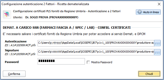 L'esempio riportato in corsivo è quanto dovrebbe rappresentare il formato standard con cui vengono rilasciati i certificati da Regione Umbria (A1#10099X#CF MEDICO.pfx per l'autenticazione e S1#10099X#CF MEDICO.pfx per la signature) e dove "X" è un numero tra 7 per i PLS e 6 per i sostituti.